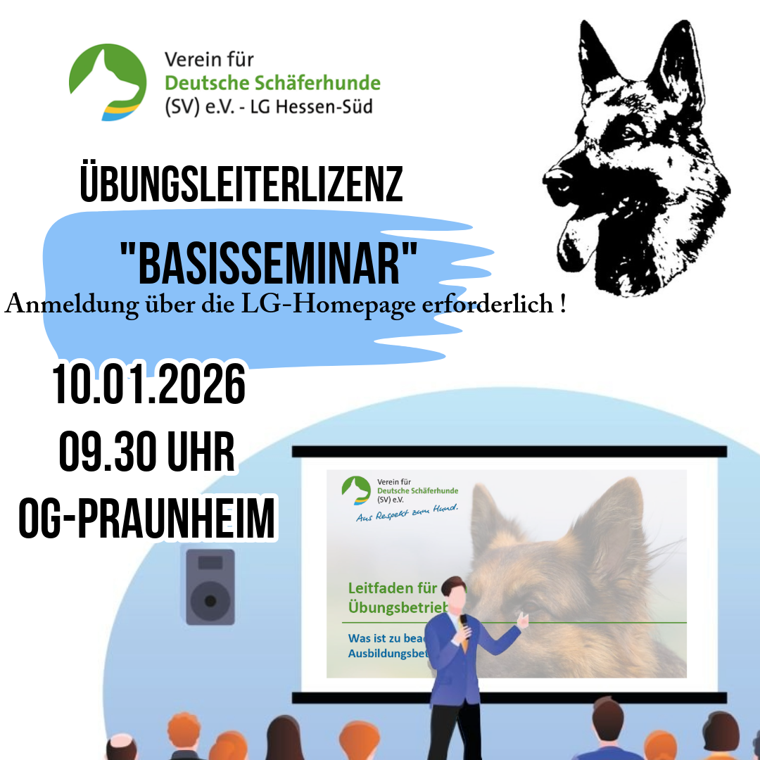 Übungsleiter-Seminar Obedience Beginn: 9: 30 Uhr Referenten: Carolin Stichel und Veronika Trapp (Elke König) Ort: OG Hausen-Obertshausen Badstraße 28 63179 Obertshausen Anmeldung bitte per Mail an: koenig-em@t-online.de