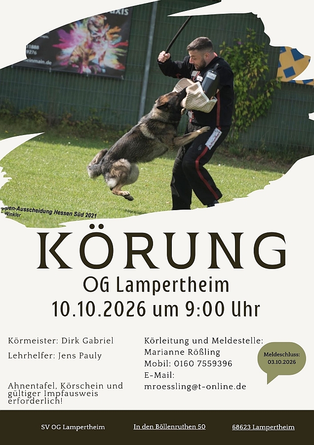 Ort: OG Lampertheim In den Böllenruthen 50 68623 Lampertheim KM: Dirk Gabirel LH: Jens Pauly Meldestelle: Marianne Rößling, 0160-7559396 mroessling@t-online.de