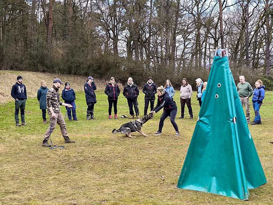 Im weiteren Verlauf des Tages widmete man sich intensiv der praktischen Arbeit mit den Hunden. Beginnend beim Aufbau von Junghunden wurden die einzelnen Ausbildungsschritte bis hin zum Figurieren kompletter Prüfungsabläufe gezeigt und gemeinsam trainiert. Die Teilnehmer konnten hierbei wertvolle Erfahrungen sammeln und ihr Wissen praxisnah vertiefen.